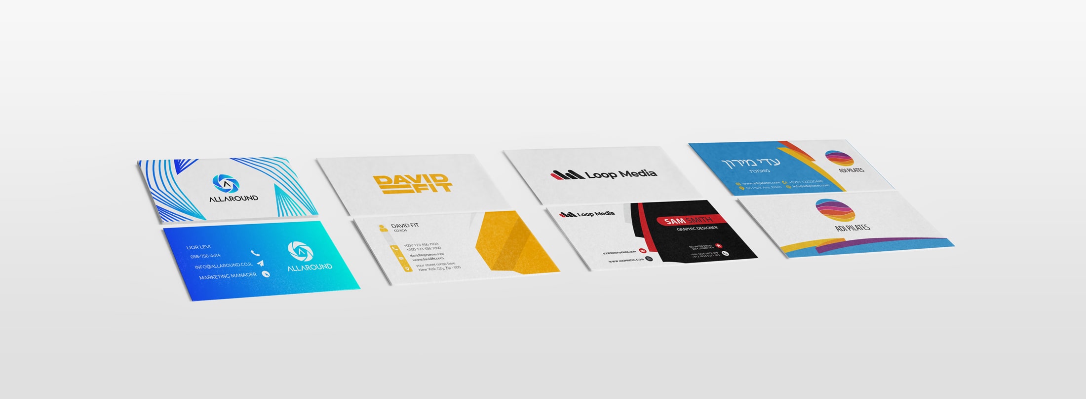 הדפסת כרטיסי ביקור סטנדרטיים בגודל 5X9 ס”מ על נייר כרומו מט 300 גרם עם אפשרות הדפסה משני צידי הכרטיסים. איכות מקסימלית, מינימום נמוך ומשלוח מהיר.