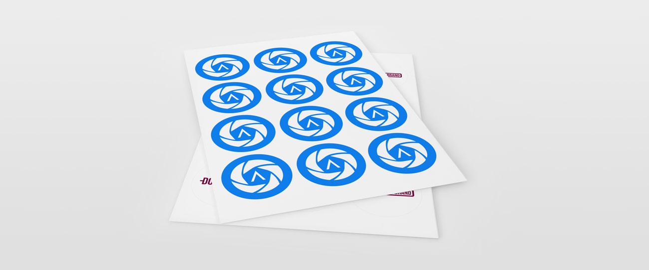 הדפסה של מדבקות עגולות על גיליון מלא וקילוף של כל מדבקה בקלות. המדבקות יודפסו על גבי ויניל עם גימור מבריק לנראות מקסימלית בעזרת חומר עמיד לשמש, תנאי חוץ ושימוש על מוצרים.