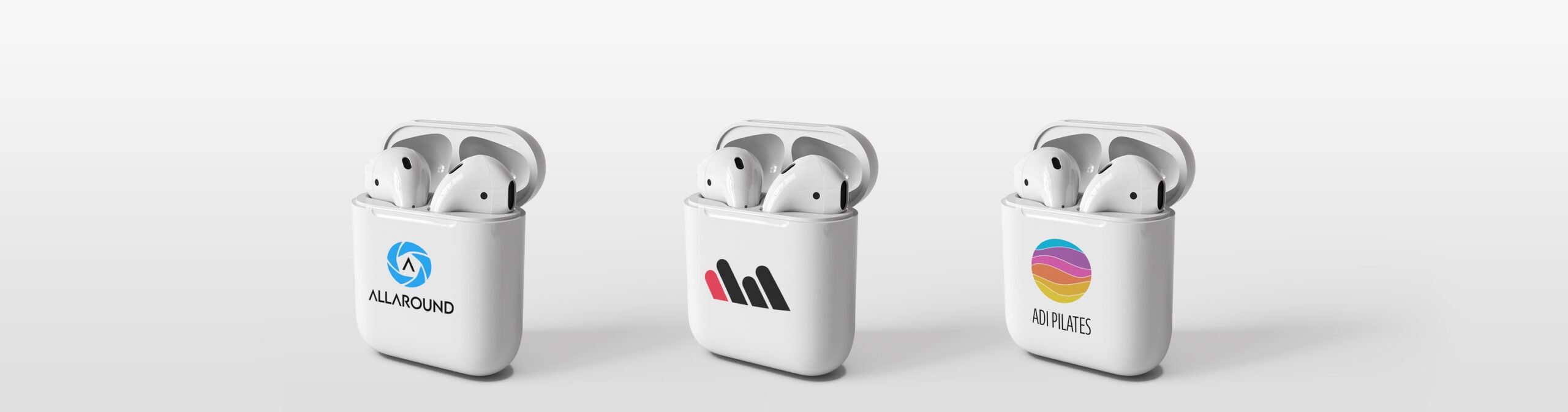 אוזניות בלוטוס בסגנון “איר-פודס” עם אפשרויות הדפסה של כל לוגו או עיצוב בחזית, עם מינימום הזמנה נמוך והדפסה רק לאחר אישור הדמיה.