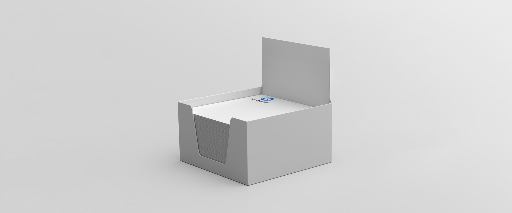 הדפסה של כל לוגו או עיצוב על פתקיות בגודל 9X9 ס”מ מנייר נטול עץ 80 גרם, ללא הגבלת צבעים ומינימום הזמנה נמוך.